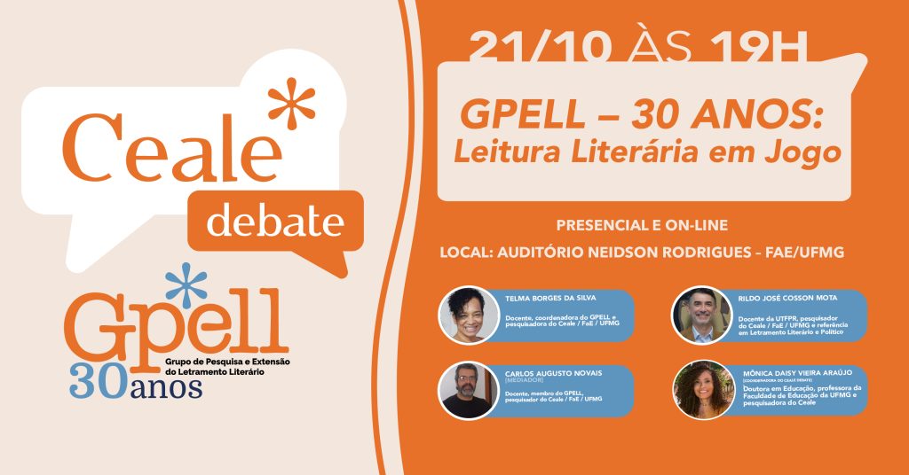 Em outubro, o Ceale Debate realiza uma edição especial em comemoração aos 30 anos do GPELL – Grupo de Pesquisa e Extensão do Letramento Literário, ao celebrar três décadas de atuação dedicada à pesquisa, à formação de professores e à valorização da literatura infantil e juvenil.